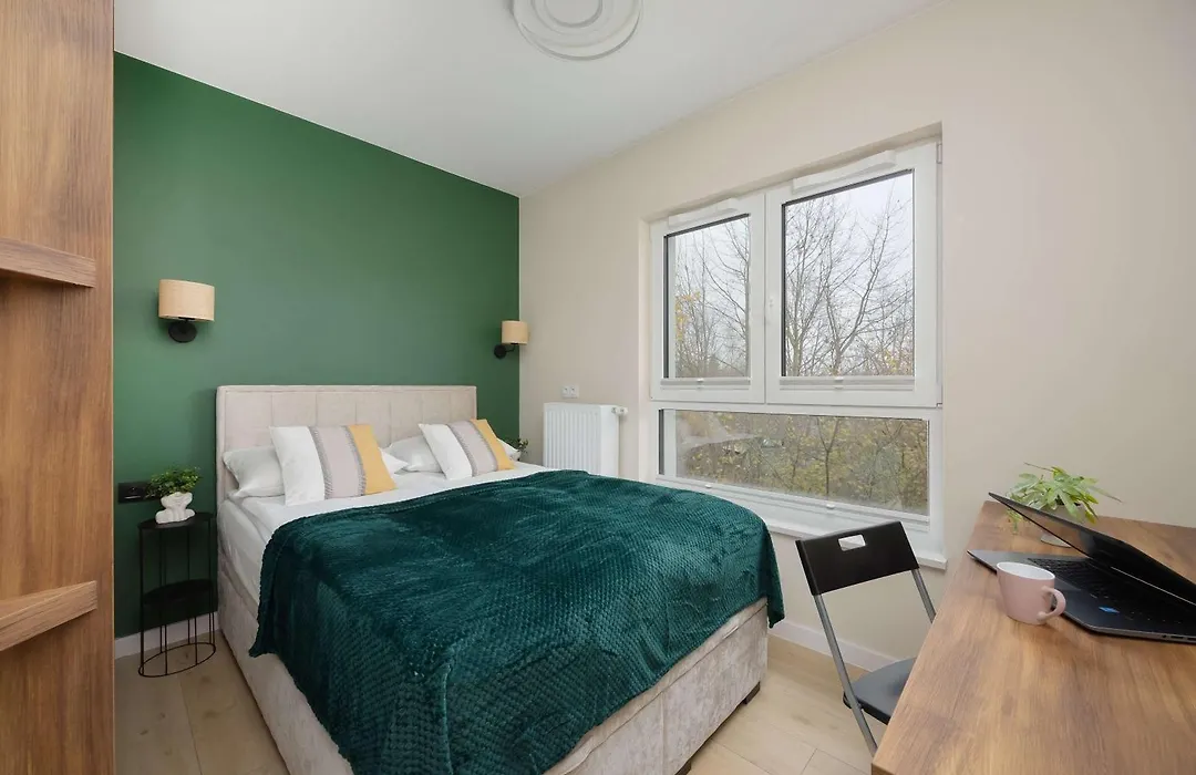 Green Apartment In Warsaw With Parking, Bathtub And Desk For Remote Work By Noclegi Renters also features a kitchenette fitted with an oven and a dishwasher. Warszawa Główna train station is 7 km away, and Radiowa-WAT 01 bus stop is within a few blocks of the 38 m² Green Apartment In Warsaw With Parking, Bathtub And Desk For Remote Work By Noclegi Renters.