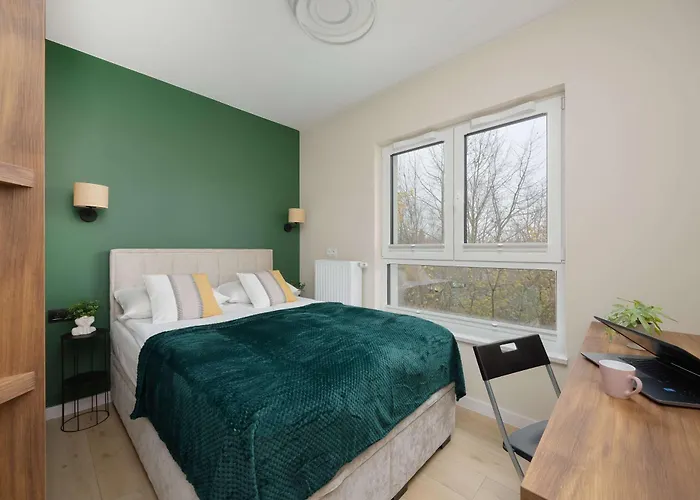 Green Apartment In Warsaw With Parking, Bathtub And Desk For Remote Work By Noclegi Renters is a great place to stay in the Bemowo district, 2.4 km from the Powązki Military Cemetery. Wi-Fi and private car parking are provided for guests' business or leisure needs.